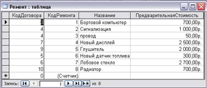 - СтоимостьРемонта – тип Currency. Поле для введения стоимости ремонта.