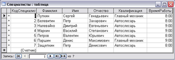 - КодСпециалиста - тип Long. Это поле в которое вводится кодспециалиста;