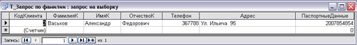 Рисунок 10 – Запрос на поиск клиентов по Фамилии