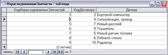 - КодИзрасходованныхЗапчастей. Поле, в которое вводится номера компонентов. Данное поле является первичным ключом;