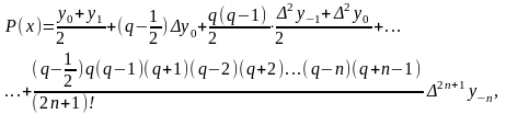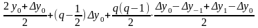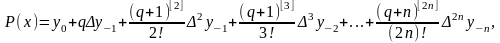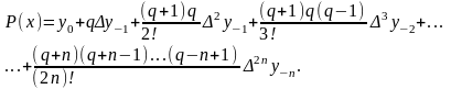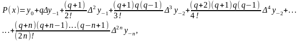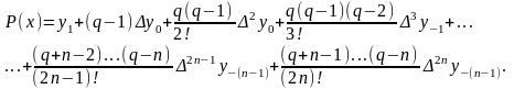 причому відповідно індекси всіх різниць в правій частині формули (1) зростуть на одиницю. Замінивши в правій частині формули (1) q на q-1 і збільшивши індекси всіх різниць на 1 , отримаємо допоміжну інтерполяційну формулу