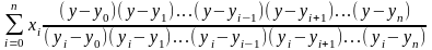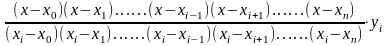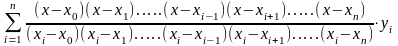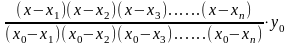 Нехай при х=х0, х1, ... , хn функція f(х) приймає відповідно значення у0, у1,... , уn. Багаточлен ступеня не вище n, що приймає у вузлових точках задані значення, має вид: