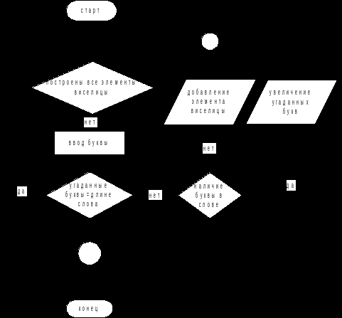После нажатия кнопки старта игры, пользователь должен ввести букву в текстовое поле и нажать кнопку “Ввод буквы”. После чего идёт проверка на наличие этой буквы в загаданном слове. В случае, если такая буква присутствует, то она считается угаданной. Иначе, начинается появление на экране элементов виселицы. Чем больше пользователь ошибается, тем ближе виселица к своему завершению. Когда количество ошибок превышает допустимую норму, пользователь считается “повешенным”, а на экране возникает сообщение об окончании игры. В случае, если угаданы все буквы, то игра заканчивается сообщением о победе игрока.