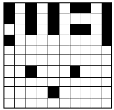 На первый взгляд, эта игра носит чисто вероятностный характер, так как игроки ведут обстрел, не зная расположения кораблей противника. Но, приобретя некоторый опыт игры, можно заметить, что существуют стратегии расстановки кораблей, которые уменьшают вероятность попадания в последний одноклеточный корабль. Например, можно расположить весь флот таким образом, чтобы он занимал минимальное место на игровом поле, а один или два корабля ставят на оставшемся пространстве как на рисунке 1. Поиск кораблей также можно проводить, придерживаясь определенной системы, которая позволяет наиболее быстро обнаружить в начале игры многоклеточные корабли, а затем на оставшемся пространстве искать одноклеточные корабли.