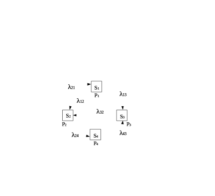 При анализе процессов работы СМО удобно пользоваться геометрической схемой – графом состояний. Обычно состояния системы изображаются прямоугольниками, а возможные переходы из состояния в состояние – стрелками. Пример графа состояний приведен на рис.1.