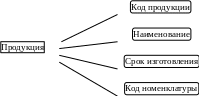 Сущность «Продукция» имеет присущие ей экземпляры сущности: код продукции, наименование, срок изготовления, код номенклатуры (рис.1).