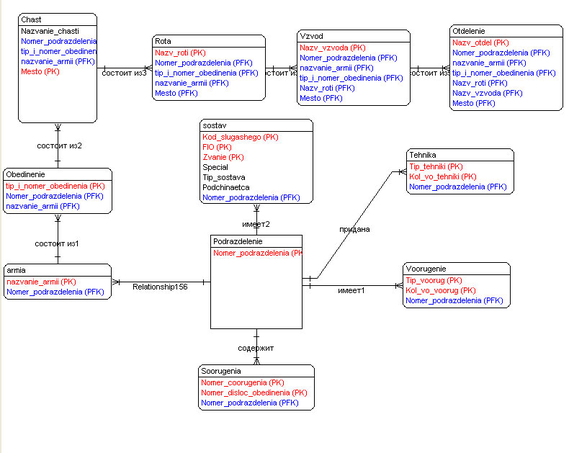 Разработать информационную систему военного округа в виде базы данных