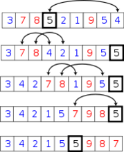 Индекс r последовательно уменьшается до m до тех пор, пока r-й элемент не окажется меньше опорного.