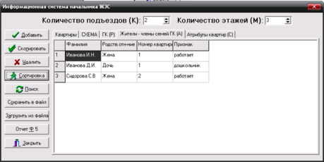 Рис. 8 – Вкладка таблицы жителей квартир – членов семей главных квартиросъемщиков (А)