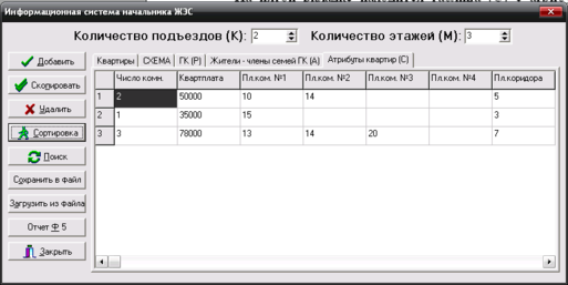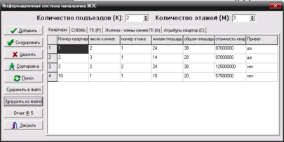 Программа имеет пять вкладок. При первоначальном запуске активируется первая – вкладка «Квартиры» (см. рис. 3).