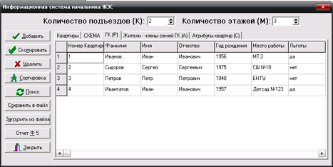 Рис. 7 – Вкладка таблицы главных квартиросъемщиков ГК(Р)