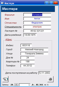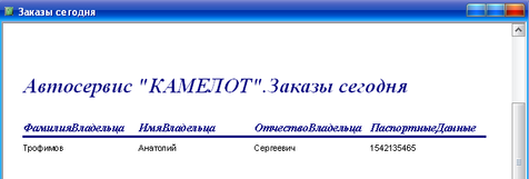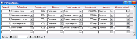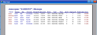 4. «Мастера» - выводит список сотрудников, работающих в автосервисе.
