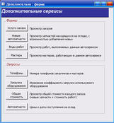 Форма «Дополнительные сервисы» содержит кнопки для активации соответствующих запросов и форм. Так же приведены комментарии к каждой кнопке.