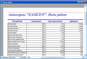 2. «Виды работ» - выводит весь перечень работ. Предоставляемых автосервисом;