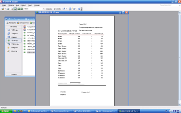 Разработанная СУБД “Производственный процесс”в приложении Access