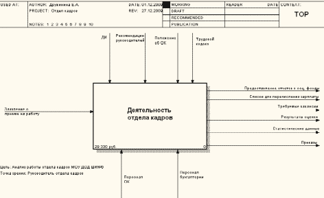 На основе анализа учета кадров в МОУ ДОД «Детская школа искусств №6» построена функциональная модель, описывающая существующую организацию работы. Модель включает: