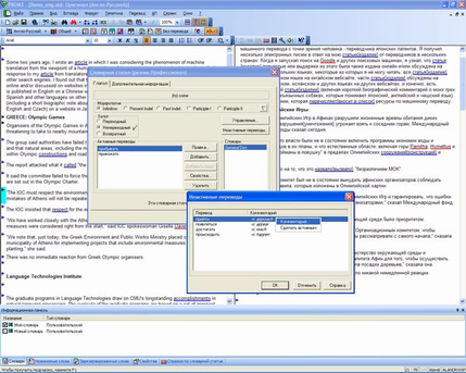 Программы PROMT (рис. 6) обеспечивают быстрый перевод с соблюдением морфологических и синтаксических правил естественных языков, предлагают набор возможностей для повышения качества перевода тематических пользовательских текстов: пользователь может создавать собственные словари, подключать готовые специализированные словари, выбирать правила перевода для конкретного текста, создавать списки зарезервированных (не требующих перевода) слов и т.д. Все это позволяет "заточить" систему перевода под конкретные тексты, с которыми работает пользователь.
