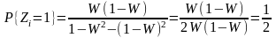 P{Zi=1}=2W (1-W)=1/2–2ξ2.