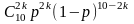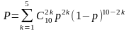 Рассмотрим ещё один пример. Производится десять независимых выстрелов по мишени. Вероятность попадания при одном выстреле задана и равна p. Требуется определить вероятность того, что число попаданий будет чётным, т.е. 0, 2, 4, 6, 8, 10. Вероятность того, что число попаданий будет 2k, равна: