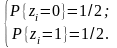 Чем меньше ξ, тем ближе вероятность P{Zi=1} к величине 1/2.