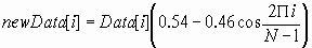 После ввода данных в окно перед вычислением ДПФ на него накладывается окно сглаживания Хэмминга: