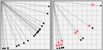 Для исследования динамики обучения и свойств слоя Кохонена был создан инструмент «Модель нейросети», в котором моделируется слой Кохонена в двумерном сигнальном пространстве (Рис 6).