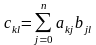 Добутком матиці А = на матрицю В = , називається третя матриця С = , кожен елемент якої дорівнює сумі добутків елементів відповідного (k - того) рядка матриці А на елементи відповідного (l - того) стовпця матриці В, тобто