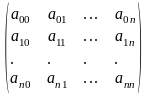 Мінором будь - якого елемента матриці n - го порядку називається визначник порядку n-1, що складається з матриці А, які залишаються після вилучення i -того рядка та j - того стопця на перехресті яких цей елемент знаходиться . Мінор елемента будемо позначати .