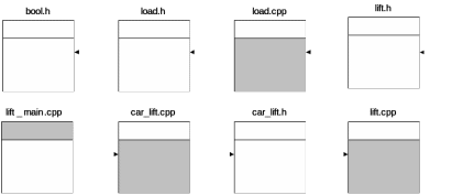 Единственная связь, которая может существовать между двумя модулями, - компиляционная зависимость - представляется стрелкой, выходящей из зависимого модуля. В C++ такая зависимость указывается директивой #include. В множестве компиляционных зависимостей не могут встречаться циклы. Чтобы определить частичную упорядоченность компиляций, достаточно выполнить частичное упорядочение структуры модулей системы.