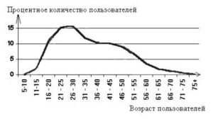 Рис. 5. График зависимости процентного количества пользователей от возраста