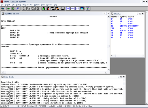 Так как в данной разработке сравнение чисел и управление выходным сигналом выполняется с помощью программы, написанной на языке Ассемблер, то необходима проверка работоспособности этой программы.