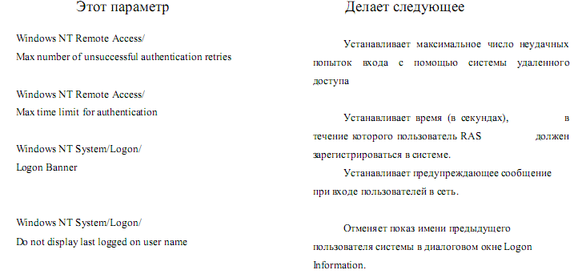 В этих файлах следует как минимум установить параметры, запрещающие запись паролей в файлах .PWL, число попыток входа в систему и т.п. (см. предыдущий раздел).