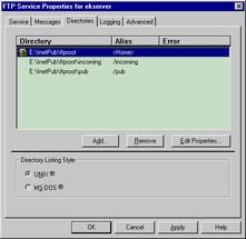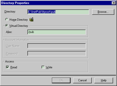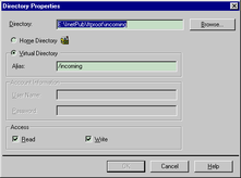 Как это принято в Интернет, рекомендуется в FTP-директории создать папки pub и incoming. Из папки pub посетитель может только читать информацию, а в папку incoming – только записывать. Для этого необходима довольно сложная комбинация разрешений NTFS и IIS.