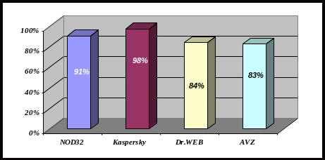 | Антивирус NOD32 | 91% | 85 | 75 | 3 |