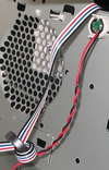 Основные провода для подключения кнопки пуска и индикации идут к материнской плате в виде отдельного шлейфа для исключения путаницы. Более того, этот шлейф проходит через кольцо из ферромагнитного материала – это позволяет довольно эффективно фильтровать всевозможные помехи, например, от мощных источников полей. Почти все производители уже отказались от старых динамиков для звуковой индикации, и этот корпус не стал исключением. Маленький излучатель закреплен на передней панели с помощью пластмассового держателя.