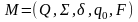 Σ – допустимый входной алфавит (конечное множество допустимых входных символов), из которого формируются строки, считываемые автоматом;