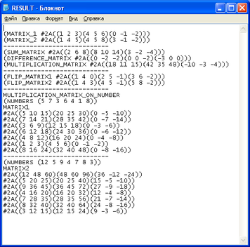 (PRINT (LIST 'DIFFERENCE_MATRIX (SUBTR_MATRIX MATRIX1 MATRIX2 ROW1 ROW2 COL1 COL2)) OUTPUT_STREAM)