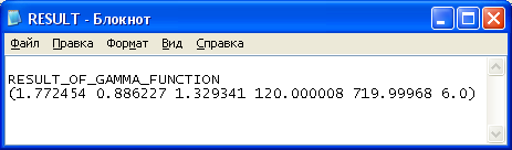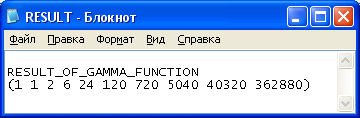 ;РЕЗУЛЬТАТ ГАММА-ФУНКЦИИ