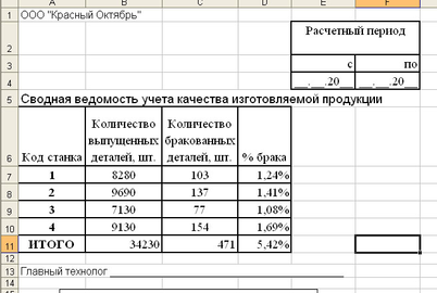 На рабочем листе «Сводная форма» создать сводную ведомость учета качества изготовляемой продукции.