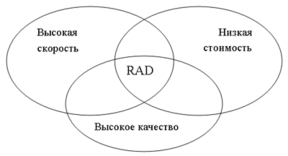RAD предполагает, что разработка ПО осуществляется небольшой командой разработчиков за срок порядка трех-четырех месяцев путем использования инкрементного прототипирования с применением инструментальных средств визуального моделирования и разработки. Технология RAD предусматривает активное привлечение заказчика уже на ранних стадиях – обследование организации, выработка требований к системе. Причины популярности RAD вытекают из тех преимуществ, которые обеспечивает эта технология.