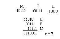 том случае, если длина блока, кодирующего букву меньше, чем требуемая длина блока для передачи, сложение производится при ступенчатом сдвиге одной буквы относительно другой на одну позицию влево, начиная от первой буквы слова к последней.