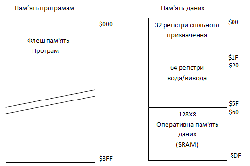 Рис. 1.2.6. Організація пам’яті даних в мікроконтролерах AT90S2313