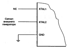 В мікроконтролері AT90S2313 виводи XTALI і XTAL2 є входом і виходом інверт. підсилювача, на якому можна зібрати генератор тактовим імпульсів. Можна використовувати як кварцові, так і керамічні резонатори. Якщо потрібно використовувати зовнішній тактової сигнал, він подається на вивід XTAL1, а вивід XTAL2 при цьому залишається непідключеним.