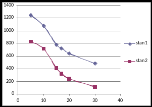 Рис.7. Зависимость количества раз, когда станок занят от интервала поступления.