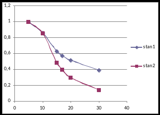 Рис.8. зависимость коэффициента использования станков от интервала поступления.