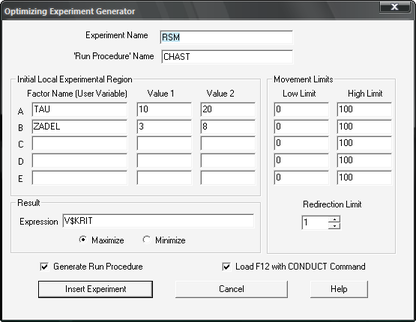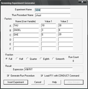 Рис.1. Диалоговое окно генератора отсеивающего эксперимента