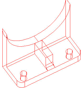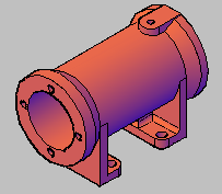4. Рисуем дугу, с радиусом равным радиусу нашего цилиндра. Под дугой рисуем контур равный лапке цилиндра. Замыкаем их в область и выдавливаем. «Рисование» → «Моделирование» → «Выдавить». Затем рисуем нижнюю часть лапки и выдавливаем. Вырезаем из лапки отверстия и сопрягаем углы. «Редактировать» → «Сопряжение». Так же при помощи команды «Выдавить» создаем ребро жесткости. Объединяем верхнюю и нижнюю части лапки и ребро жесткости. «Редактировать» → «Редактирование тела» → «Объединение».