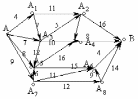 Иллюстрацией к сказанному выше может служить задача о выборе кратчайшего пути для перехода из точки A в точку B, если маршрут должен пройти через некоторые пункты. На рис. 2 эти пункты обозначены кружками, а соединяющие их дороги — отрезками, рядом с которыми проставлены соответствующие расстояния.