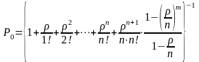 де m – довжина черги, n – кількість каналів, P0 - ймовірність того, що система знаходиться в стані S0 (СМО вільна), обчислюють за формулою :