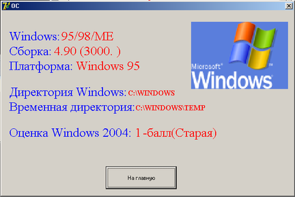 При нажатии на кнопку ОС появляется окно (Рис. 5.5) на котором мы можем посмотреть версию ОС, ее параметры, а так же балл оценки.